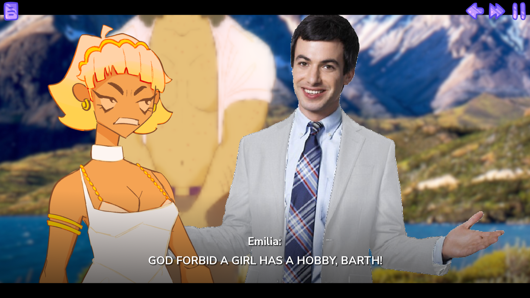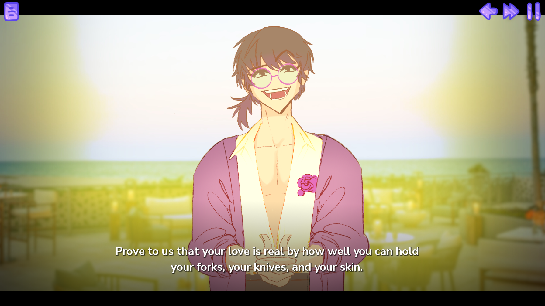 The writing is so good. This is such an innovative and fun spin on a VN. In the spirit of Love is Trauma, I'm going to forcefully bully all my friends to play it.
